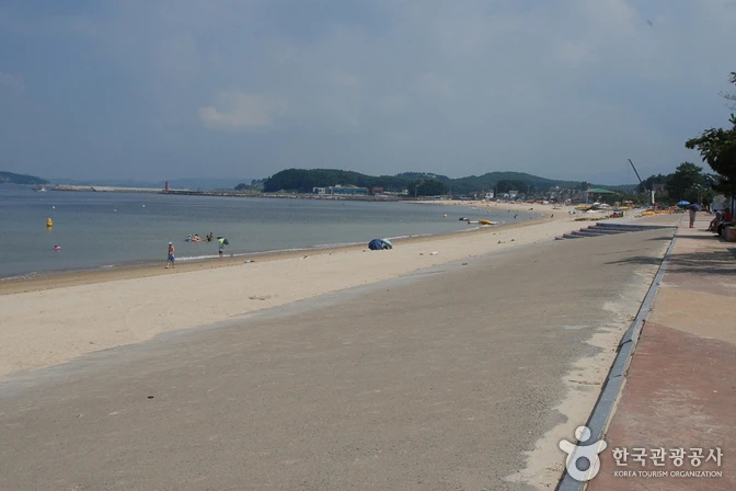 조선시대의 군창지였던 곳으로 1928년 서해안에서 최초로 개장된 해수욕장이다. 백사장 길이 1.5 km, 수심 1~2m, 백사장 50m, 수온 섭씨 22도, 경사도 4도의 해수욕장으로 주변에는 송림이 울창하여 해수욕과 산림욕을 겸할 수 있다. (자료출처 : 대한민국 구석구석 - korean.visitkorea.or.kr) 위치 : 펜션 바로 앞